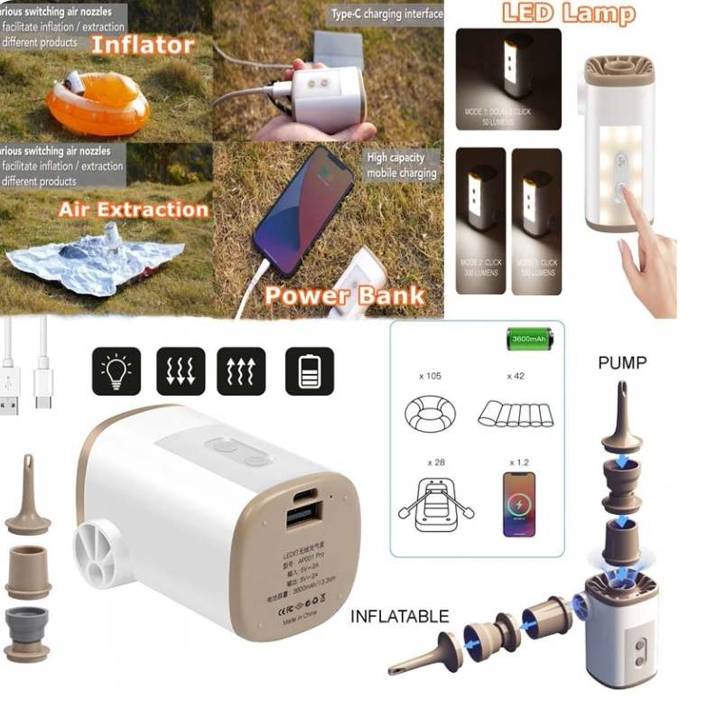 IN 1 multifunctional portable outdoor camping air pump mini electric pump outdoor high power portable air pump inflation, extraction, lighting, charging
