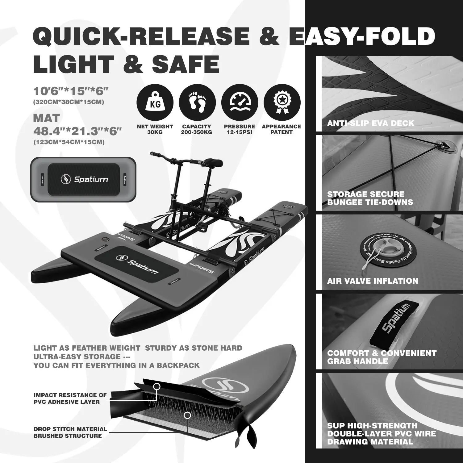 Specifications:Material: High-quality PVCOutdoor Activity: Ideal for water games. fishing. and leisurely cruisesApplicable People: Designed for menLogistics: Shipped from overseas warehouse for swift deliveryPerformance: Inflatable structure for easy storage and transportDesign and Style: Compact and lightweight. with a sleek and modern appearanceFeatures:**Versatile and Convenient**The Spatium Portable Duty Free Water Bike is a versatile and convenient addition to any water enthusiast's collection. This inflatable boat is not just a water bike; it's a multi-purpose vessel that can be used for a variety of water-based activities. Whether you're looking to engage in water games. enjoy a peaceful fishing trip. or simply cruise along the coast. this boat is your perfect companion. Its lightweight and compact structure make it easy to store and transport. allowing you to take it with you wherever your adventures may lead.**Optimized for Adventure**Designed with the active man in mind. the Spatium Water Bike is a testament to durability and performance. Crafted from high-quality PVC. this boat is built to withstand the rigors of the water. Its inflatable design ensures that it can be easily folded and stored in the boot of any car. making it a breeze to transport to your desired destination. The boat's safety features are paramount. ensuring that you can enjoy your time on the water with peace of mind. Whether you're navigating through calm waters or tackling the choppier seas. this boat is engineered to perform.**Tailored for the Adventurer**For those seeking a personalized touch. the Spatium Water Bike offers customization options. Contact us to have your name printed on the car. or to inquire about additional services that cater to your specific needs. With a focus on reliability and efficiency. we ensure that your order is shipped from our overseas warehouse within 48 hours. ensuring that you receive your boat for sale garden route in a timely manner. So. if you're looking to enhance your water sports experience with a boat that's both practical and stylish. the Spatium Portable Duty Free Water Bike is the perfect choice.